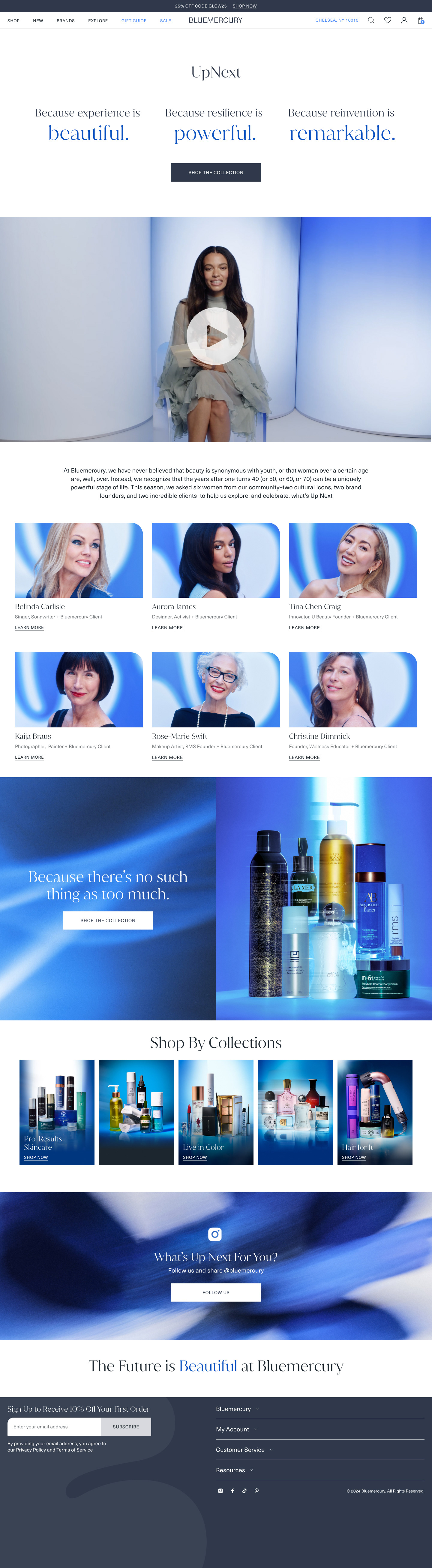 UpNext is a brand storytelling campaign that challenges the idea that beauty is defined by youth. Centered on women over 40 from the Bluemercury community, the campaign celebrates a powerful stage of life shaped by ambition, self-expression, and forward momentum.